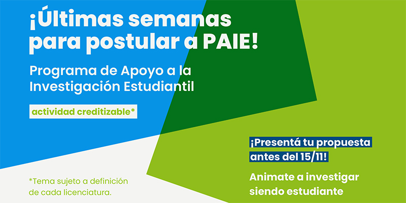El plazo para postular al Programa de Apoyo a la Investigación Estudiantil (PAIE) cerrará el 15 de noviembre a las 23:59. Esta …